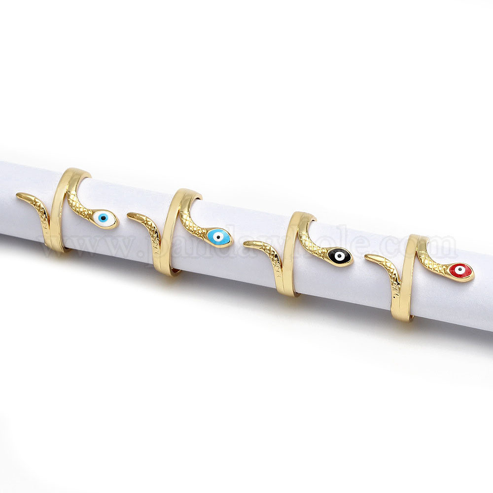 Латунные эмалевые манжетные кольца для женщин, змея со злым глазом (02X5Y8)