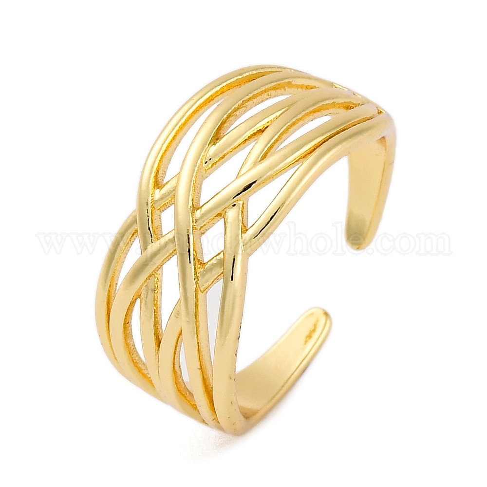 • Настоящее золото 18K Стойка покрытие латунные манжеты кольца для пальцев, кольца крест-накрест для женщин, долговечный, реальный 18 k позолоченный, 10.5 мм, регулируемый