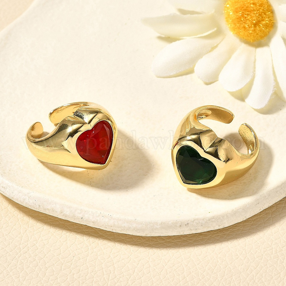 Латунные кольца-манжеты для женщин, сердце, со стеклом, стойки покрытие, долговечный, без свинца и без кадмия, реальный 18 k позолоченный
