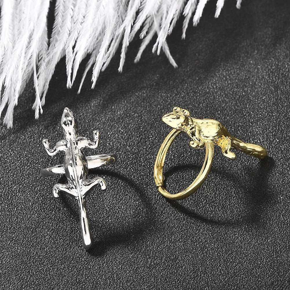 Регулируемые латунные кольца для женщин, без кадмия и без свинца, геккон