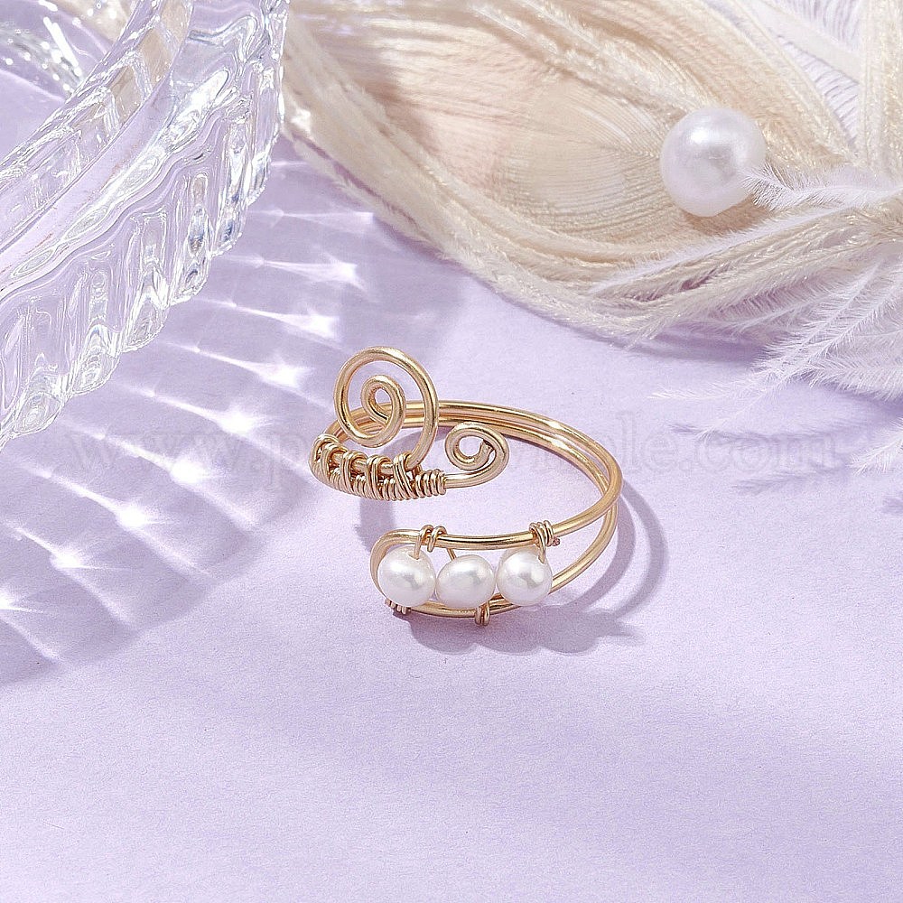 Латунные открытые кольца манжеты, с натуральным культивированным пресноводным жемчугом