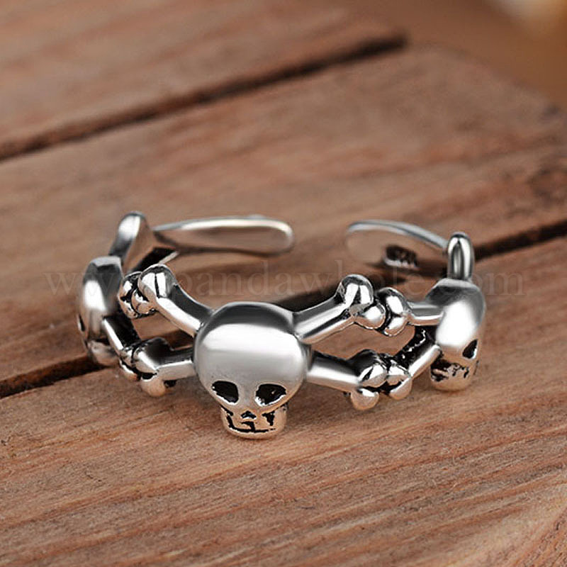 Латунный череп паук открытый манжета палец кольцо, готические украшения для женщин