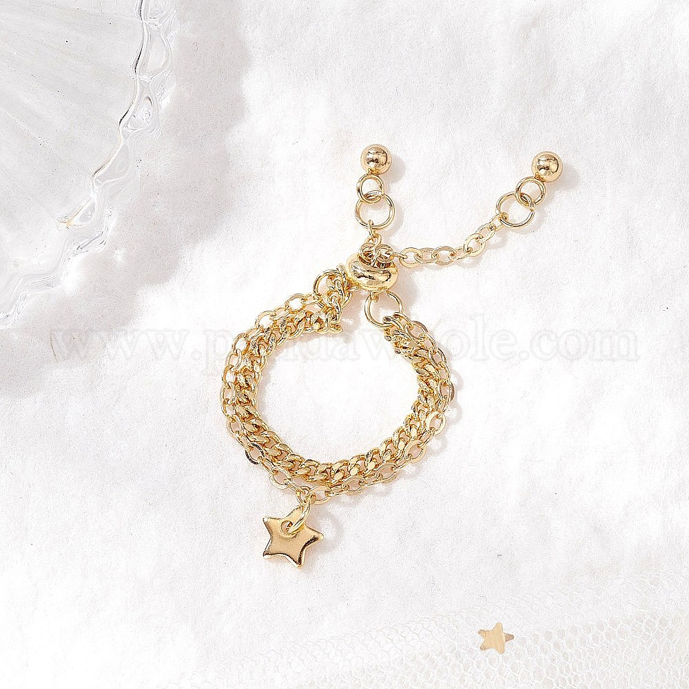 Регулируемые латунные многорядные кольца для пальцев, цепи панцирного типа и кабельные цепи кольца для женщин, со звездой прелести