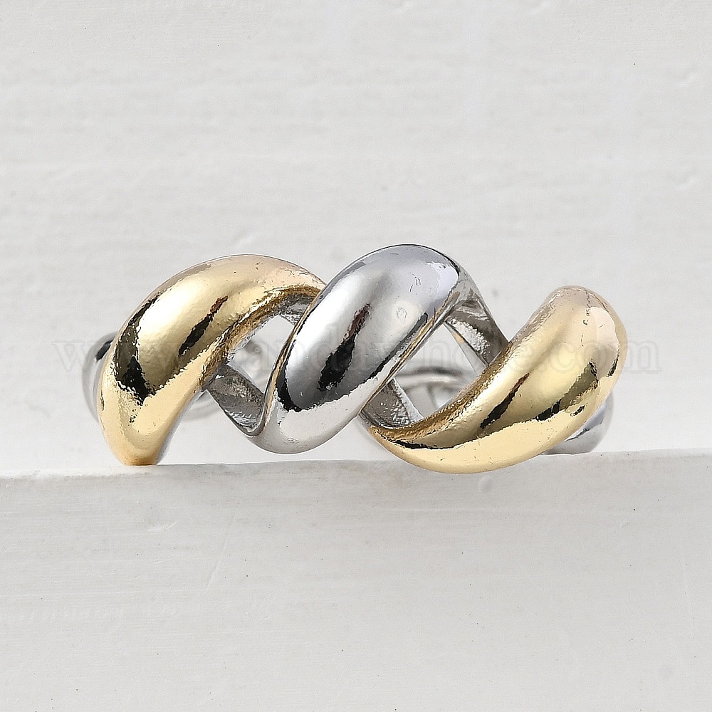 • Платиновый & Золотой Латунные открытые кольца манжеты, без кадмия и без свинца, крутильная форма, платиной и золотом, 10.5 мм, размер США 9 (18.9 мм)