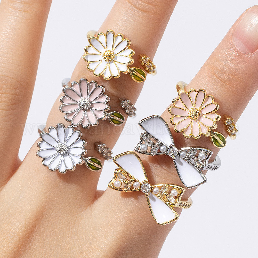 Латунные кольца-манжеты для женщин, с эмалью и горный хрусталь, цветок/бантик