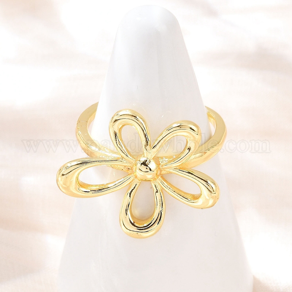 Латунь регулируемые манжеты кольца, цветок, стойки покрытие, долговечный, без кадмия и без свинца