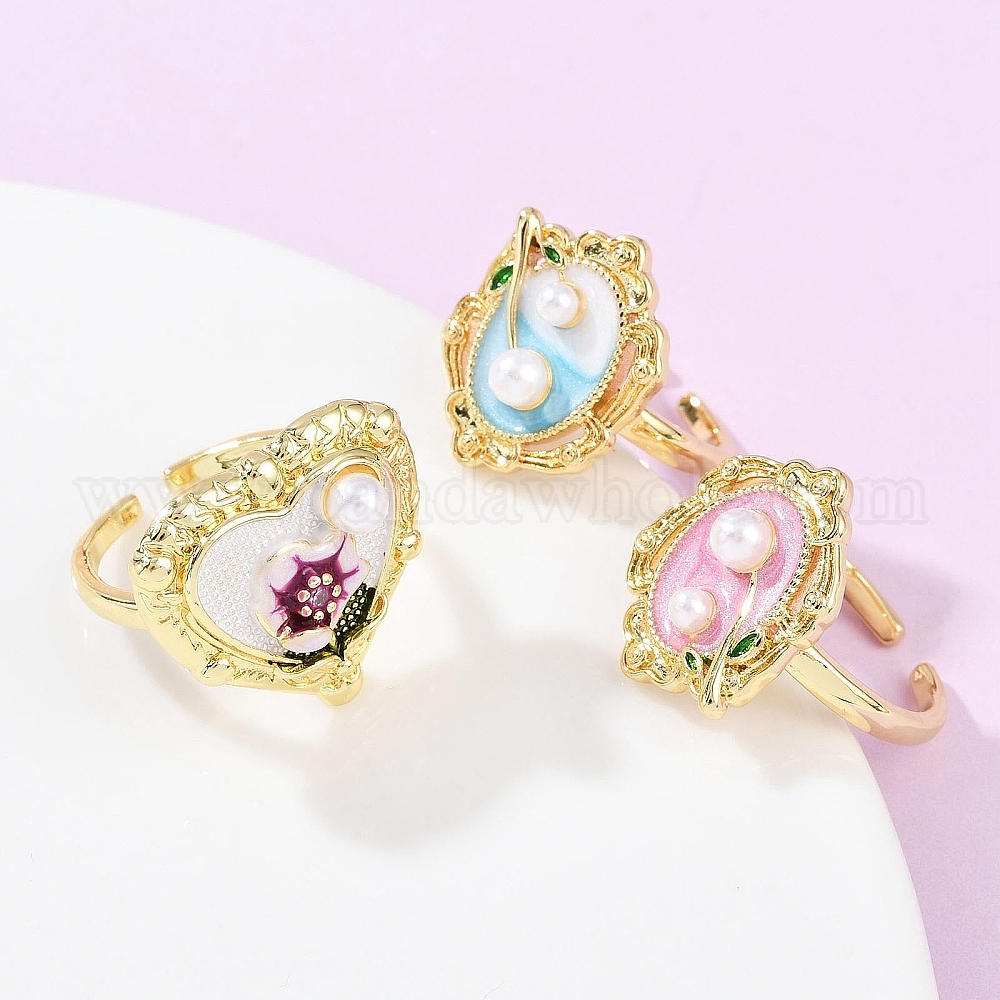 Латунные эмалевые цветочные манжеты, с абс пластмассовой имитационной жемчужиной, реальный 18 k позолоченный, стойки покрытие, долговечный, без кадмия и без свинца