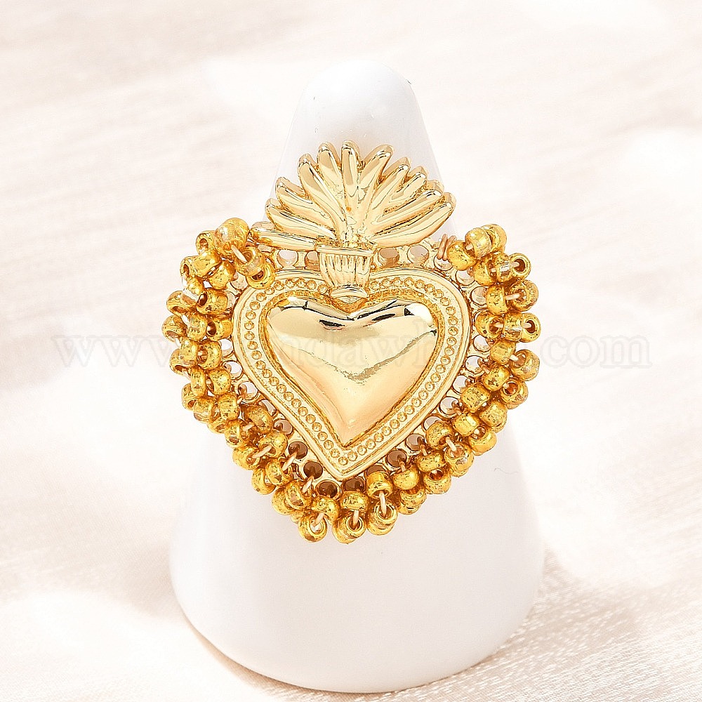 • Золотой Латунь регулируемые манжеты кольца, святое сердце, золотые, 31x27.5 мм