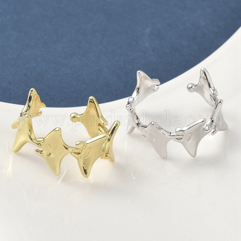 • Настоящее золото 18K Латунь манжеты кольца, рыба, долговечный, стойки покрытие, без свинца и без кадмия, реальный 18 k позолоченный, 11.5 мм