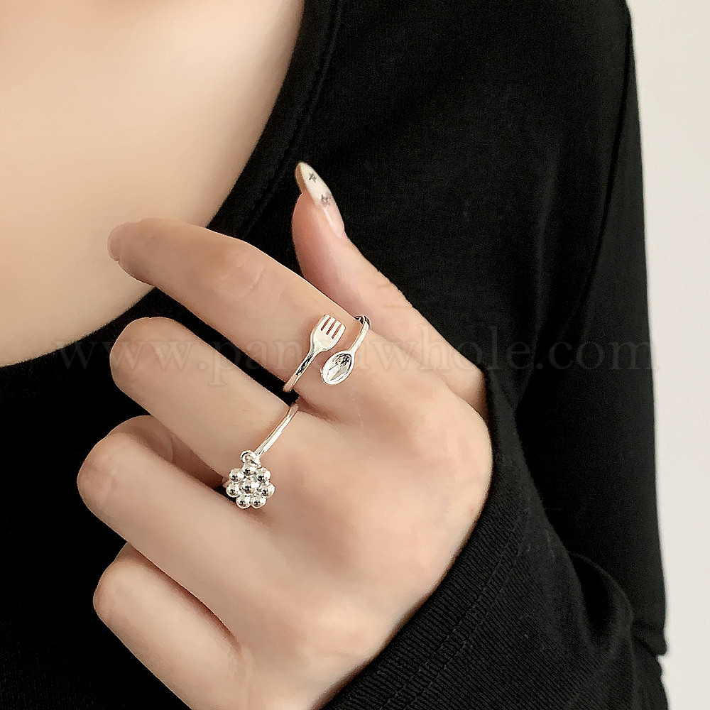 • Palm Регулируемые латунные манжеты, серебряные, ладонь, внутренний диаметр: 15~20 мм