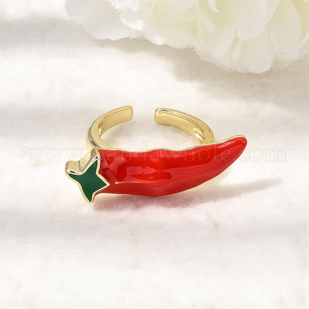 Латунные эмалевые манжеты открытые кольца для женщин, горячие прелести перец, стойки покрытие, долговечный, без свинца и без кадмия