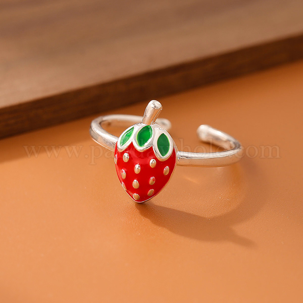Латунные эмалированные манжеты с открытыми кольцами, клубника