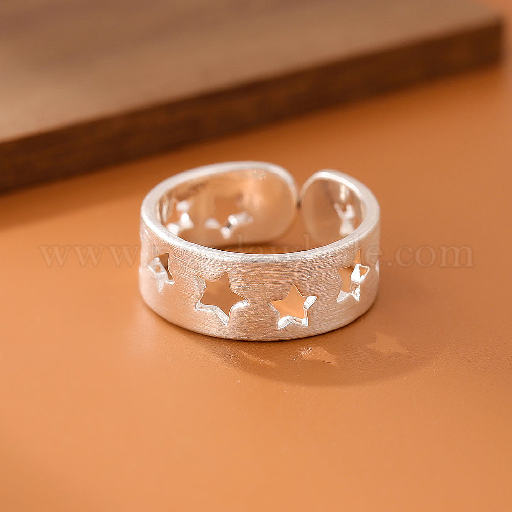 • Серебро Полые латунные кольца-манжеты для женщин, звезда, серебряные, внутренний диаметр: 15~20 мм