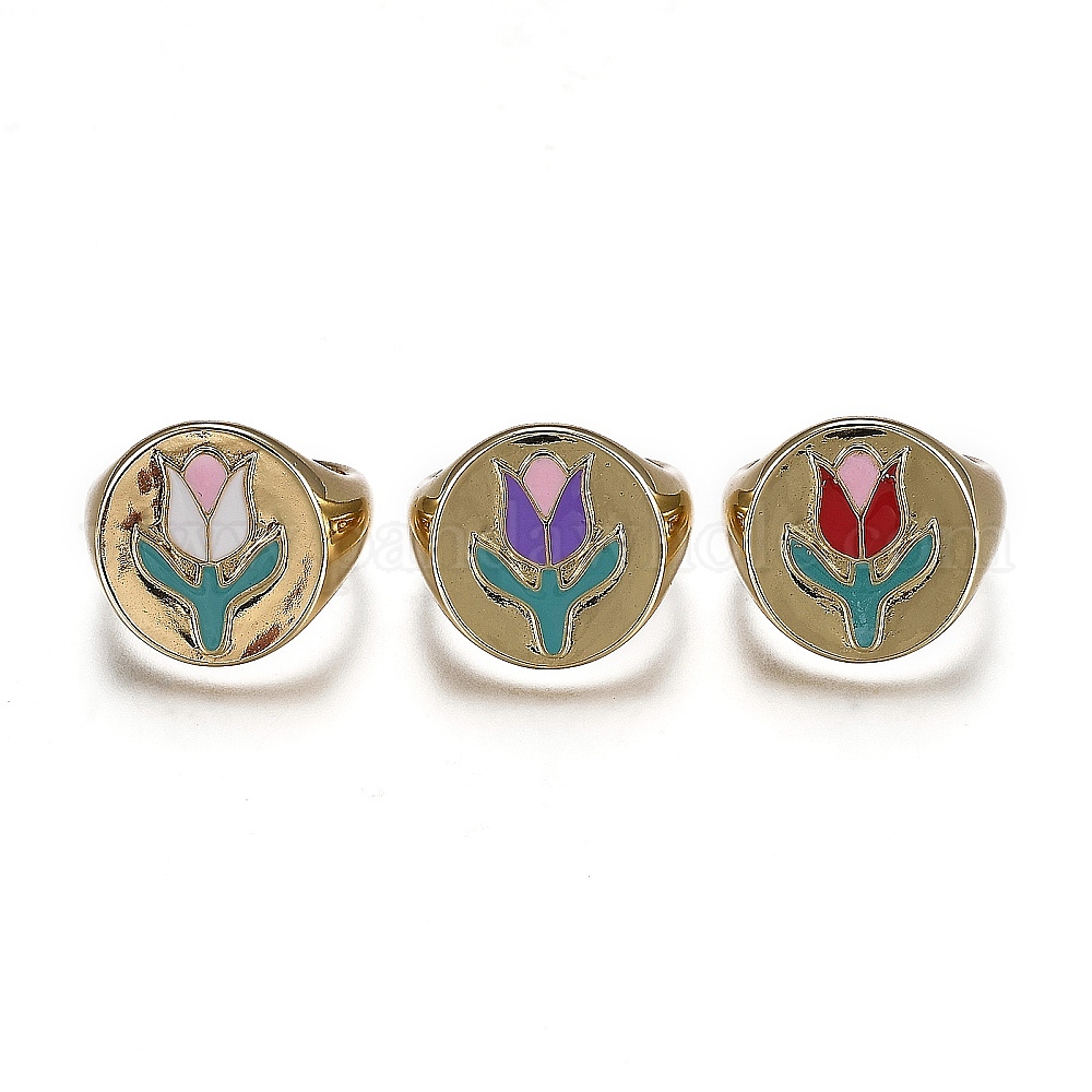 Манжеты с латунной эмалью, открытые кольца, без кадмия и без свинца, плоские круглые с цветком, золотые