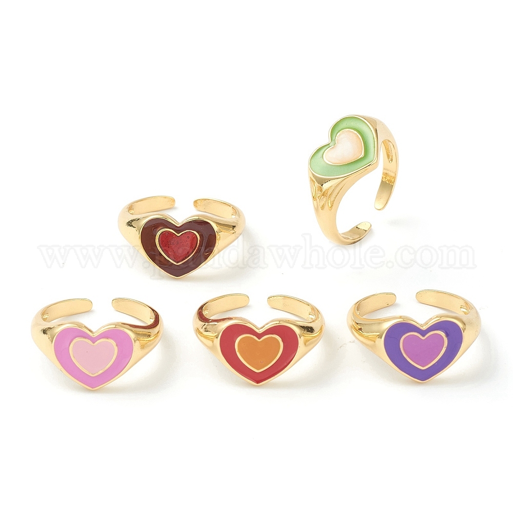 Манжеты с латунной эмалью, открытые кольца, сердце, золотые