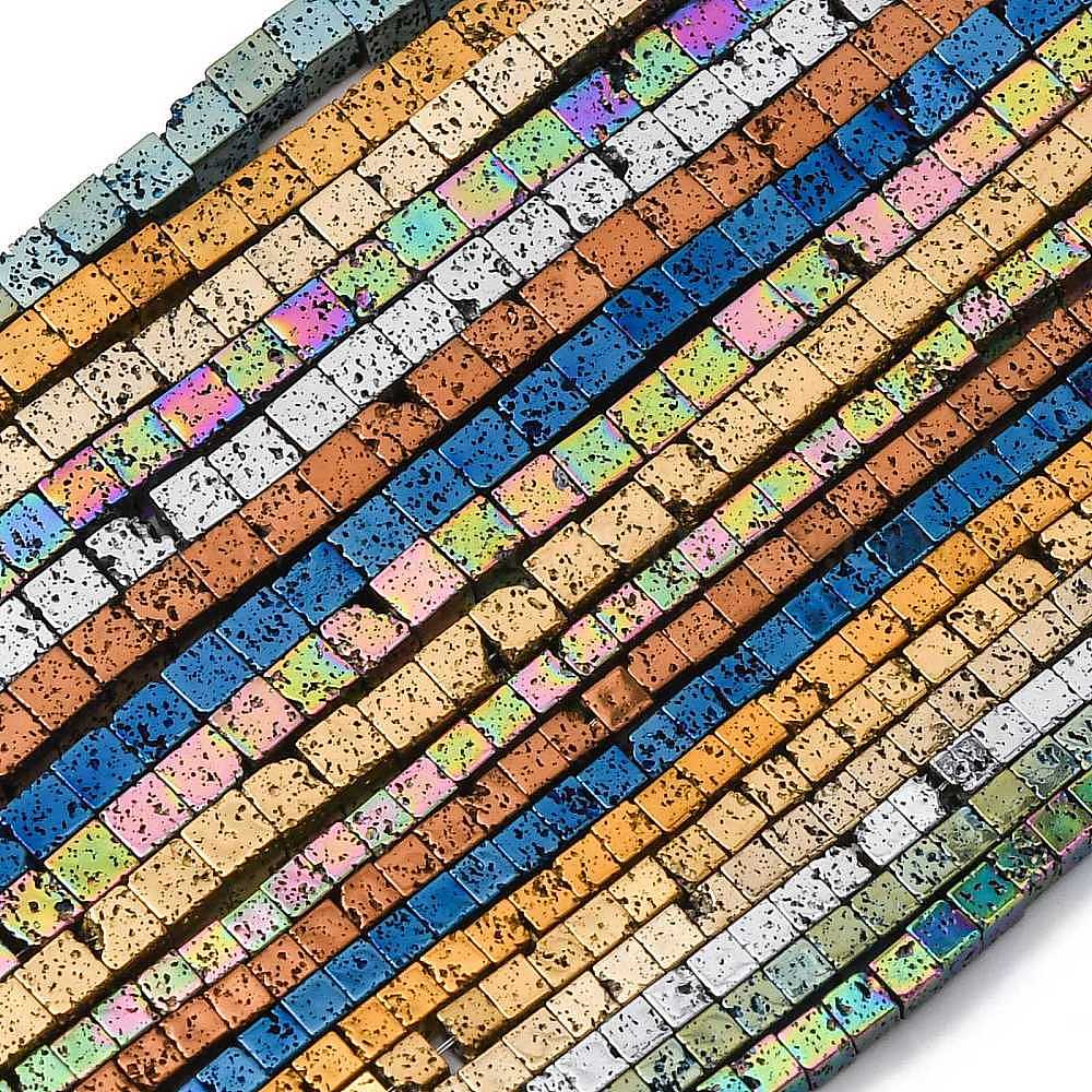 Гальванические бусины из натуральной лавы, кубические (0317ZG)