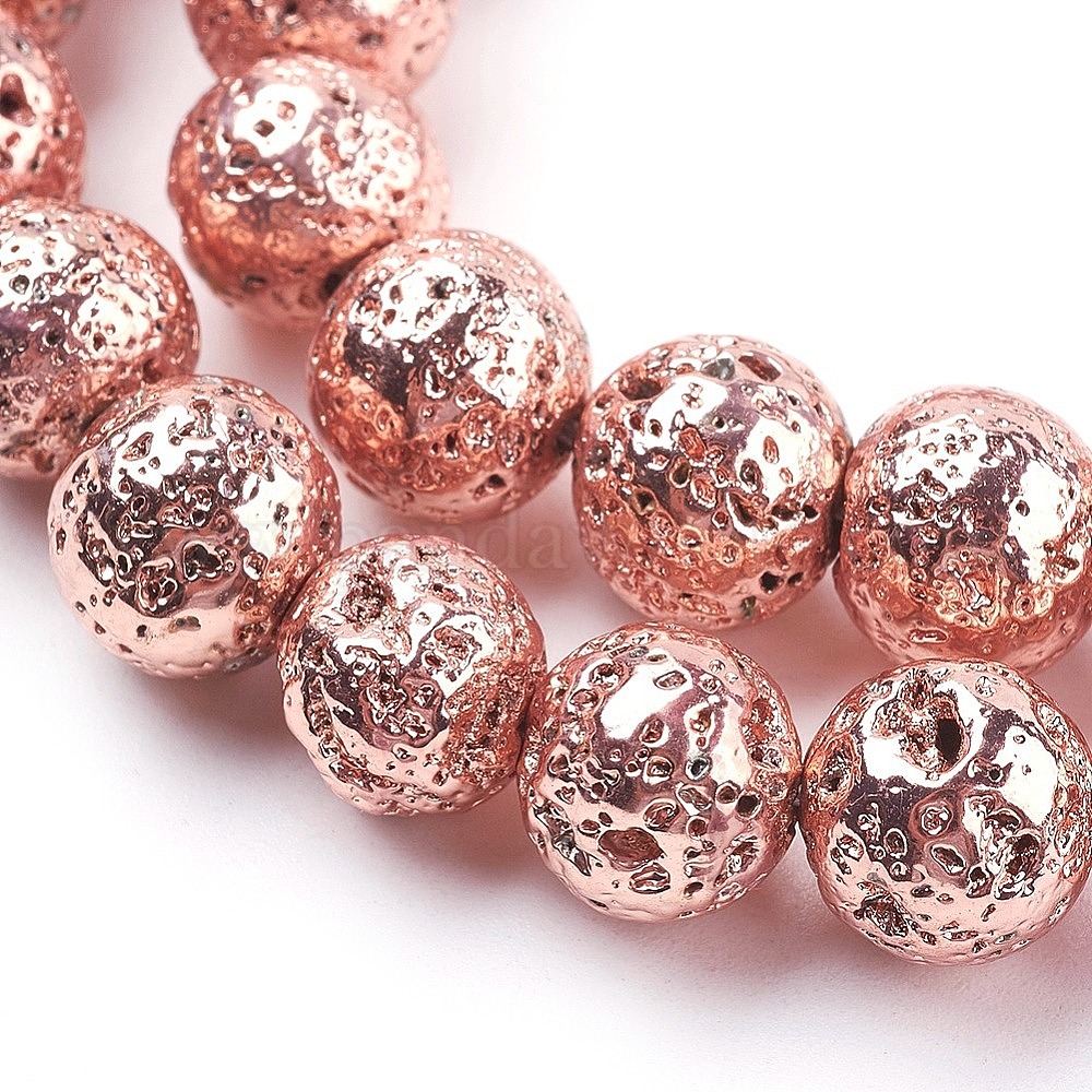 • Темный Лосось Гальванические бусины из натуральной лавы, круглые, неровный, покрытием из розового золота, 10~10.5 мм, отверстие : 1.5 мм, около 39 шт / нитка, 15.35 дюйм (39 см)