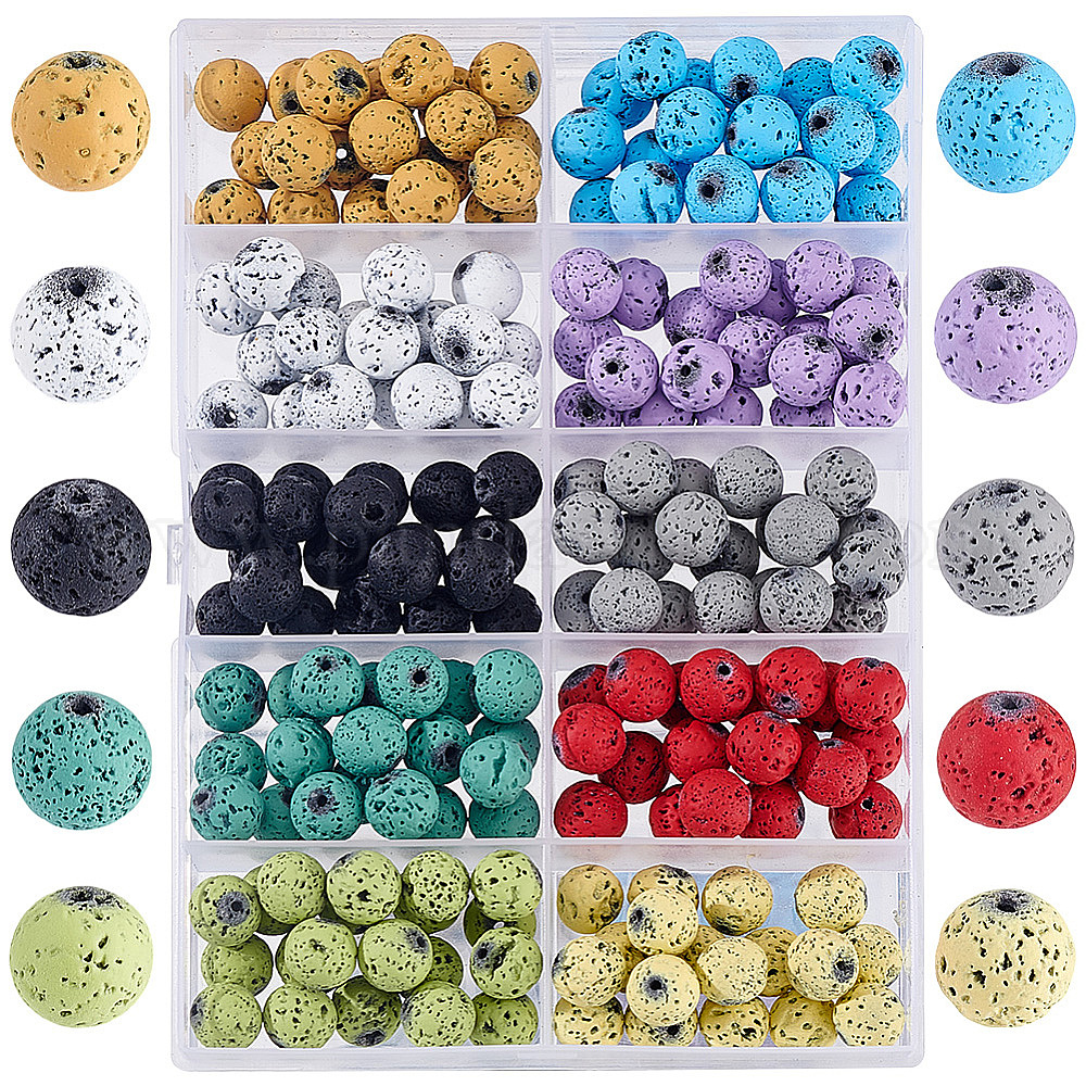 200шт. 10 цвета, окрашенные аэрозольной краской нити из натуральной лавовой породы, круглые