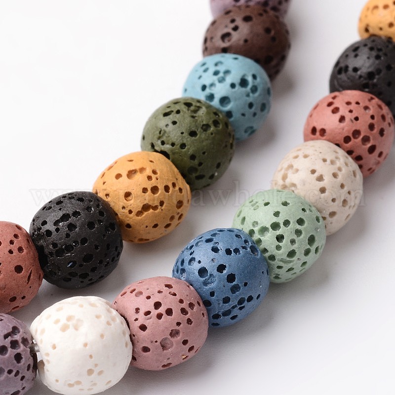 Окрашенные круглые синтетические бусины из вулканического камня (00GZ6W)