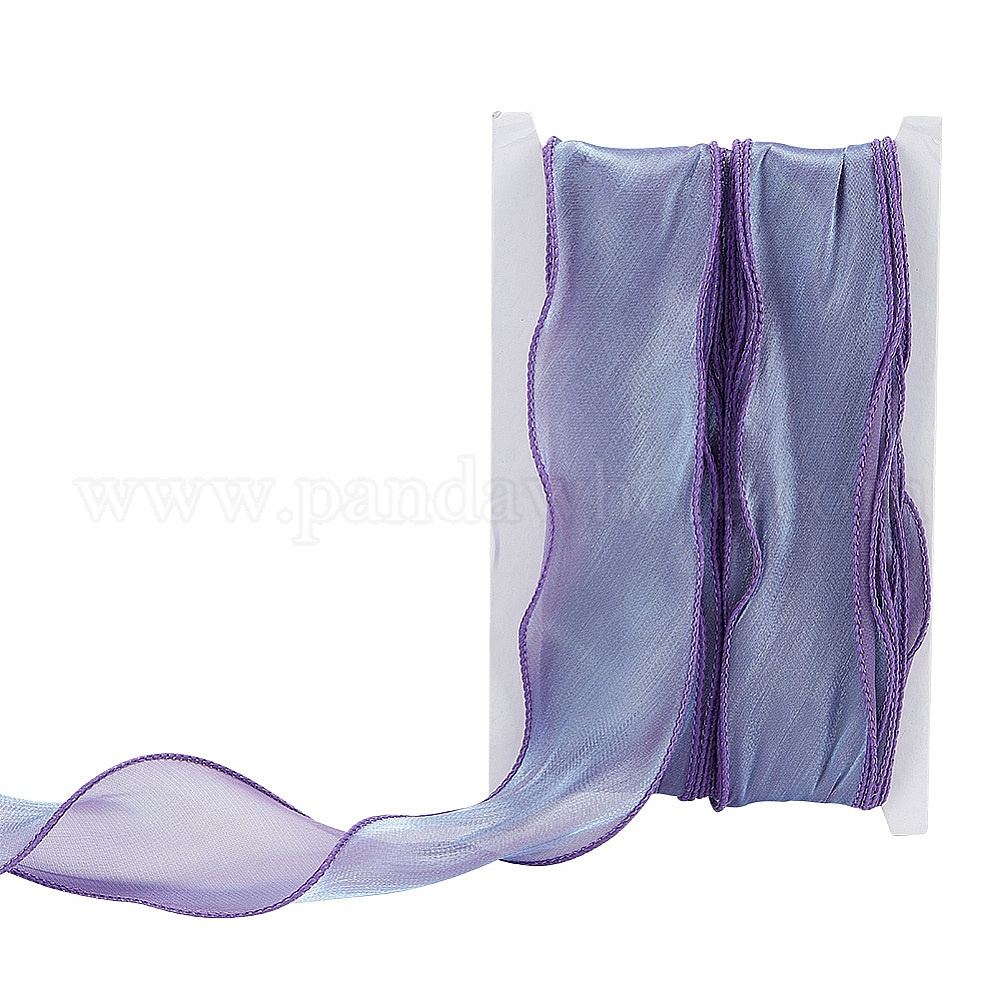 • Сине-фиолетовый Лента из полиэстеровой органзы радужного цвета, радужная лента для банта, цветок, украшение подарка, синий фиолетовый, 2~2-3/8 дюйм (50~60 мм)