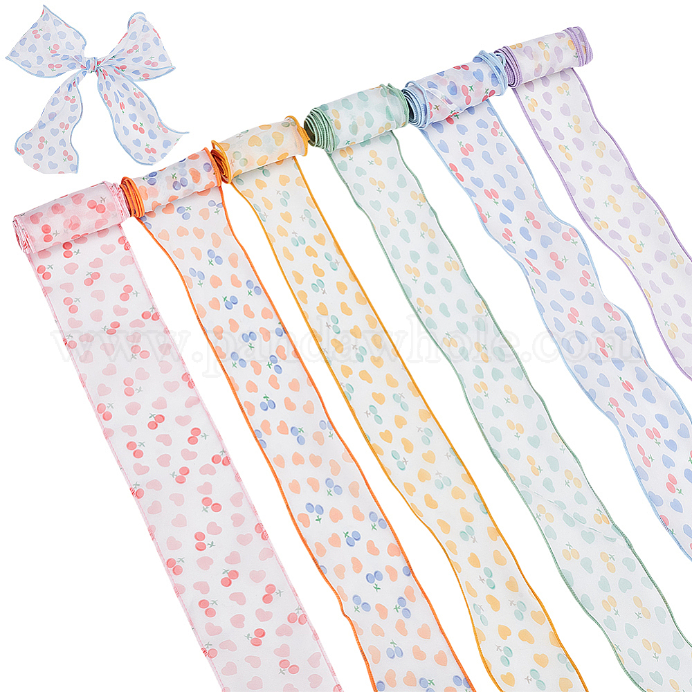 12 ярдов 6 цветов полиэстеровая марлевая лента с печатью, аксессуары для одежды, сердце с рисунком вишни