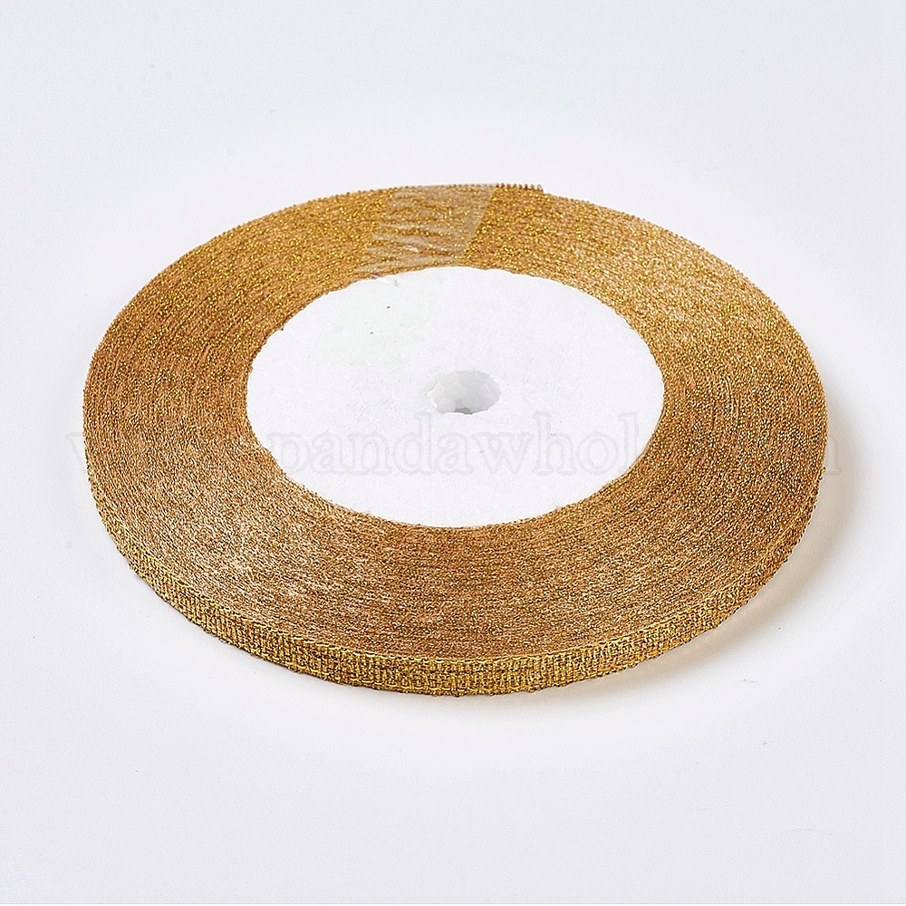 • (932FM) Темно-синий аква-матовый с подкладкой Полиэстер органза лента, блестящая металлическая лента, блеск ленты, темно-золотистые, 1/4 дюйм (6 мм), около 25 ярдов / рулон (22.86 м / рулон)
