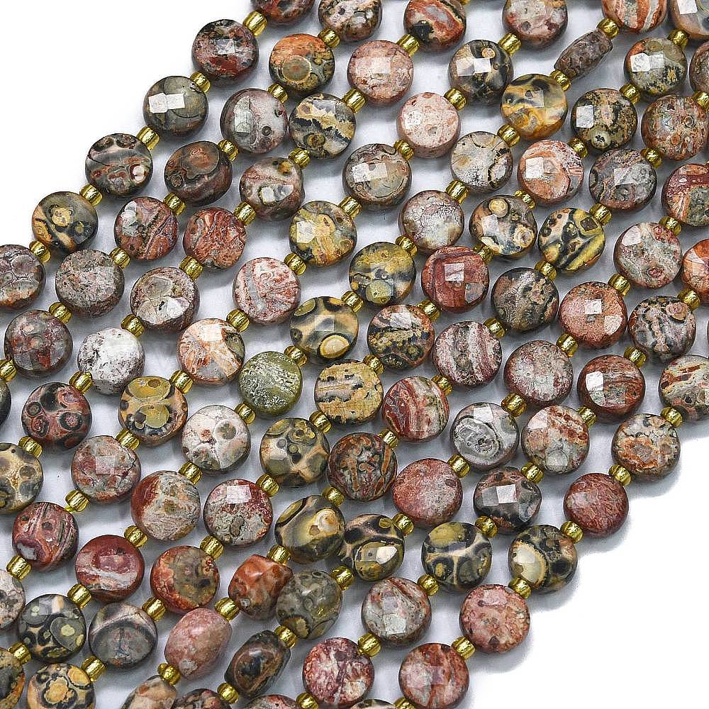 Натуральные леопардовые шкурки из яшмы, с бисером, граненые, плоско-круглые