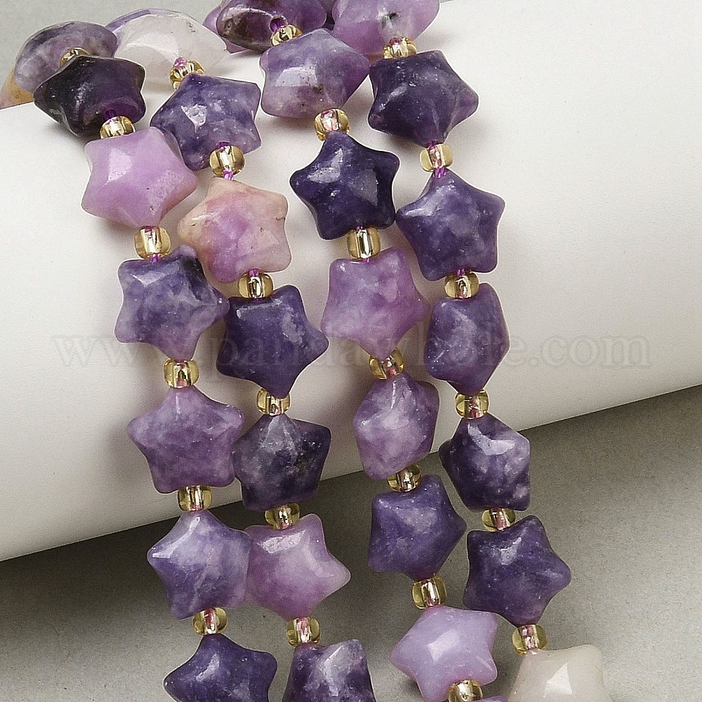 Натуральные лепидолитовые бусины, толстая звезда, с бисером
