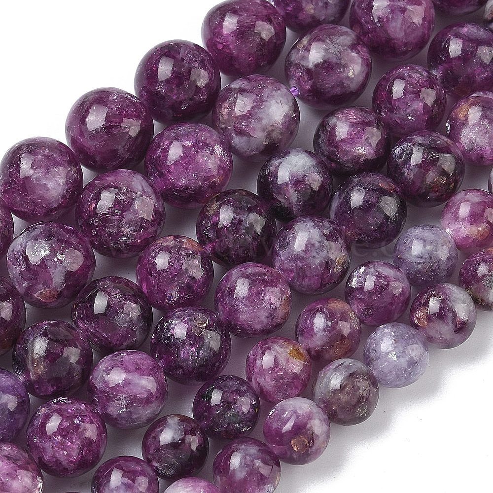 • Лепидолит Натуральный лепидолит / пурпурный слюдяный камень бисер пряди, круглые, 8.5~9.3 мм, отверстие : 0.8 мм, около 43~44 шт / нитка, 15.16''~15.43'' (38.5~39.2 см)