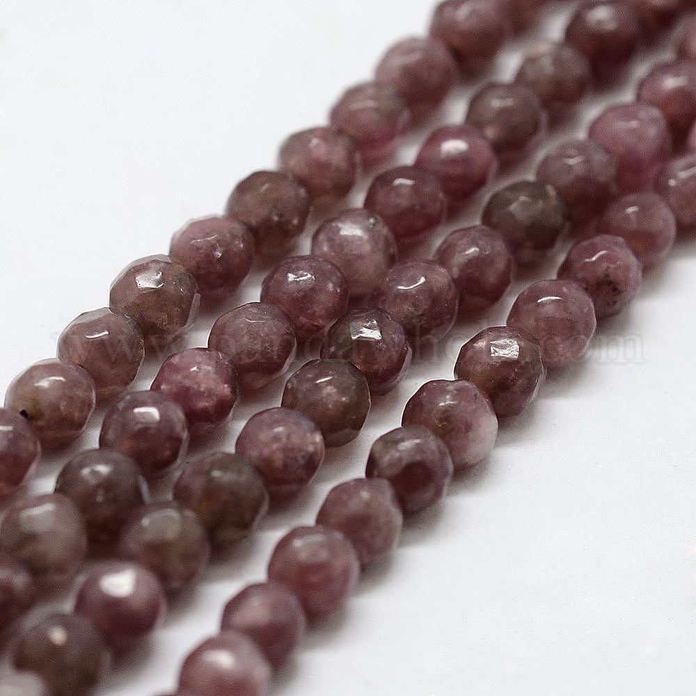 Натуральный лепидолит / пурпурный слюдяный камень бисер пряди, граненые, круглые (00N2CM)