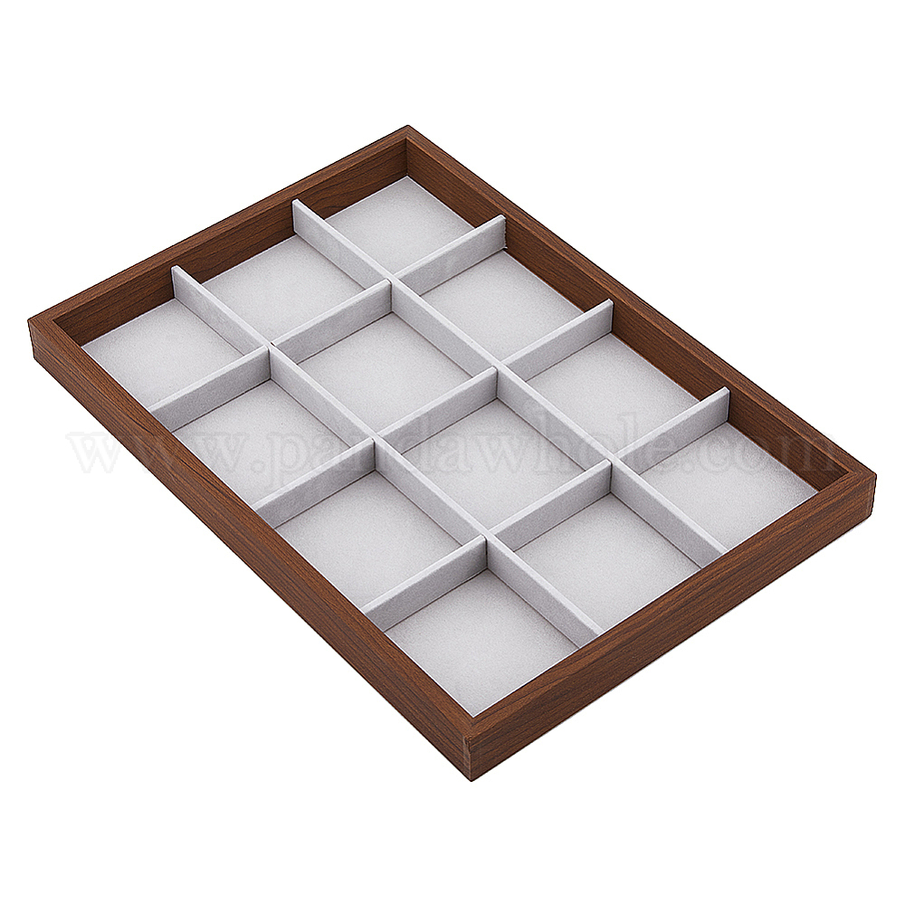 Прямоугольные деревянные подносы для демонстрации ювелирных изделий, обтянута бархатом, 12 держатель для хранения ювелирных изделий с решетками