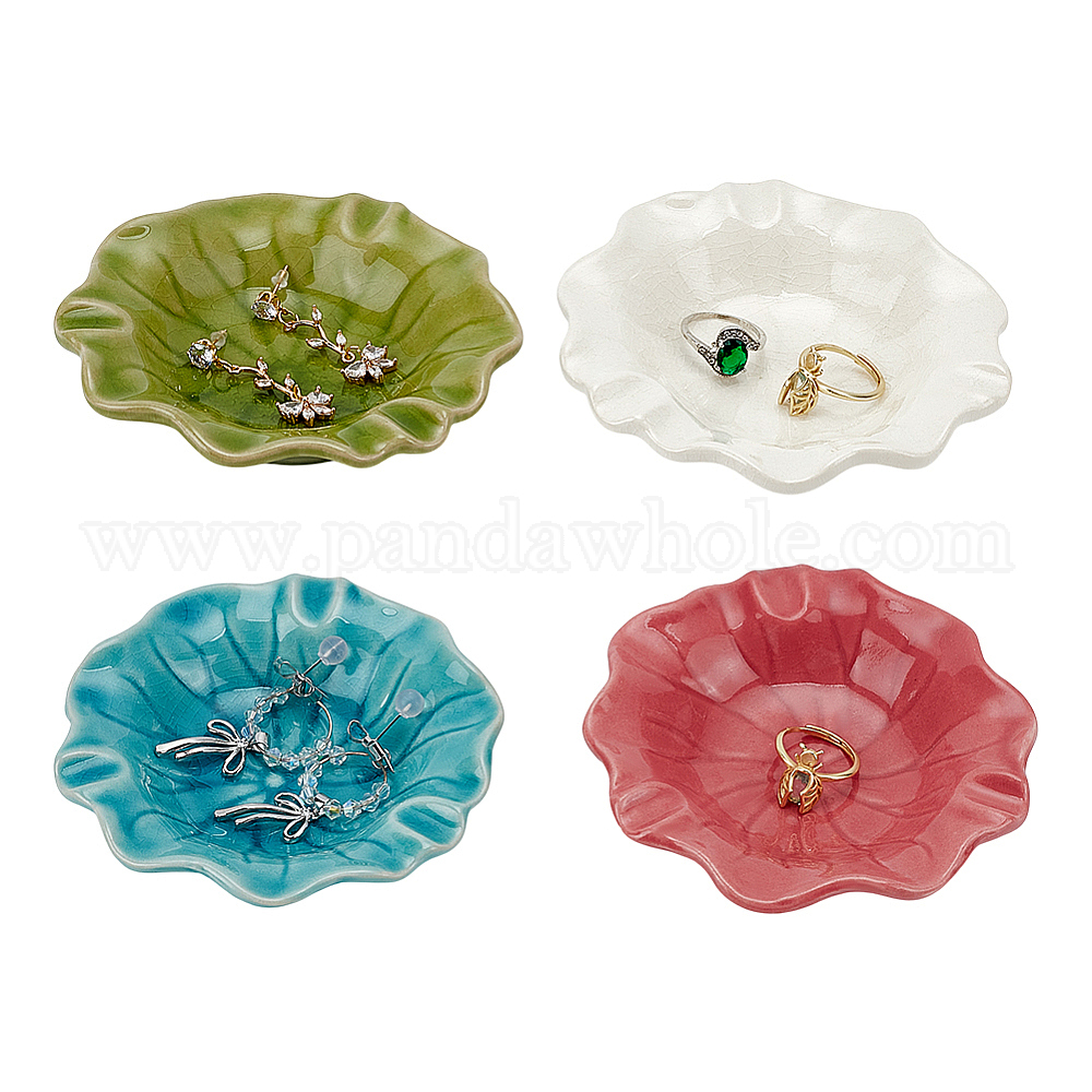 4шт. 4 цвета керамика в форме листа лотоса декоративные тарелки, Лотки для хранения ювелирных изделий, в том числе колец., , Серьги