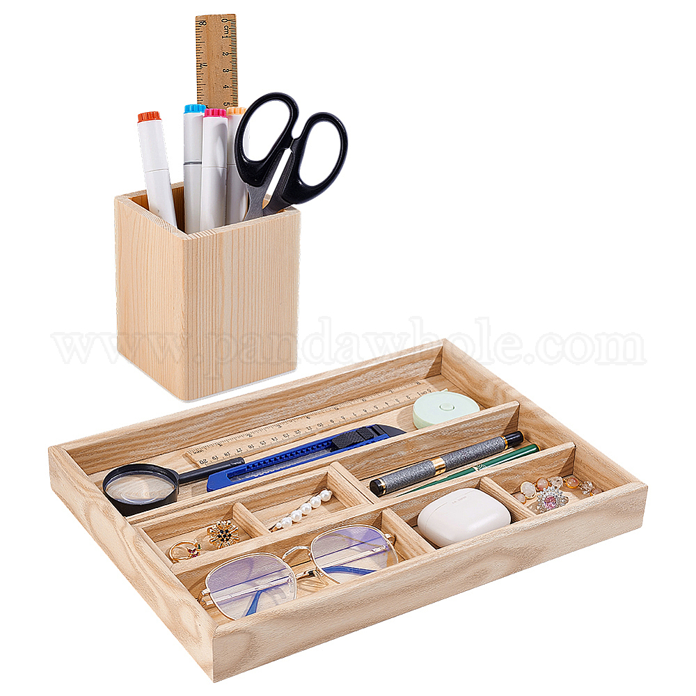 Деревянные настольные сетчатые лотки для хранения: ширина около 24.5 см., 34 см длиной, 3.6 см, Внутренний диаметр: 7.5~32x5.2~9 cm, маленький поднос: 15.5x5.7x2.3см, Внутренний диаметр: 6.7x4.5 cm, 1pc;