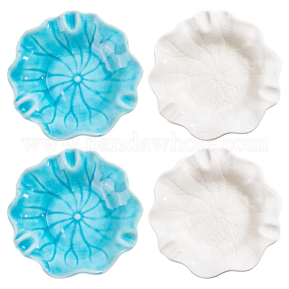 4шт. 2цветные керамические подносы для демонстрации ювелирных изделий, декоративные пластины для колец, сережек, браслетов, форма листа лотоса