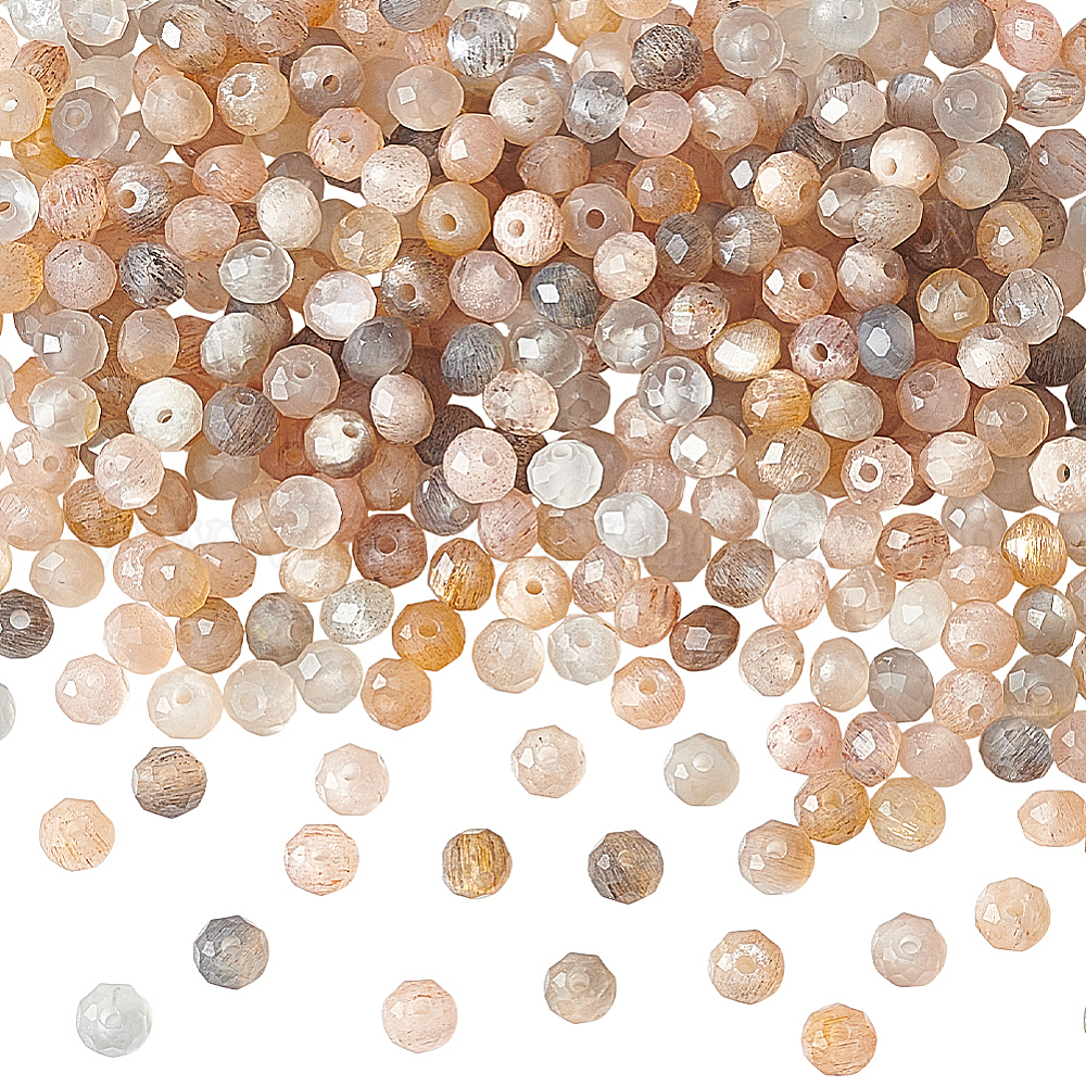 • Multi-Moonstone 2 нити натуральные многоцветные лунные камни бусины нити, граненые, рондель, 3x2 мм, отверстие : 0.7 мм, около 168 шт / нитка, 15.35~15.43 дюйм (39~39.2 см)