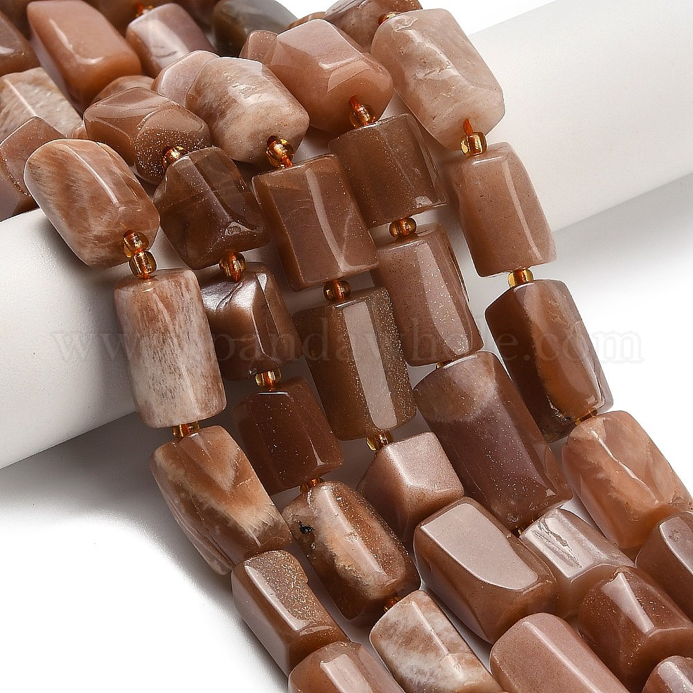 Натуральный персиковый лунный камень, колонка, с бисером, граненые
