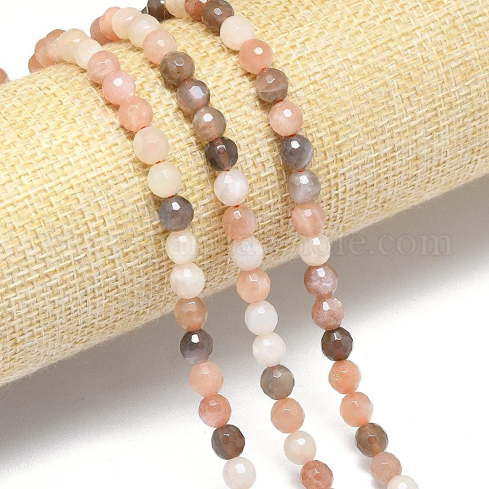 Нити из натуральных бусин из нескольких лунных камней, граненый (128 граней), круглые