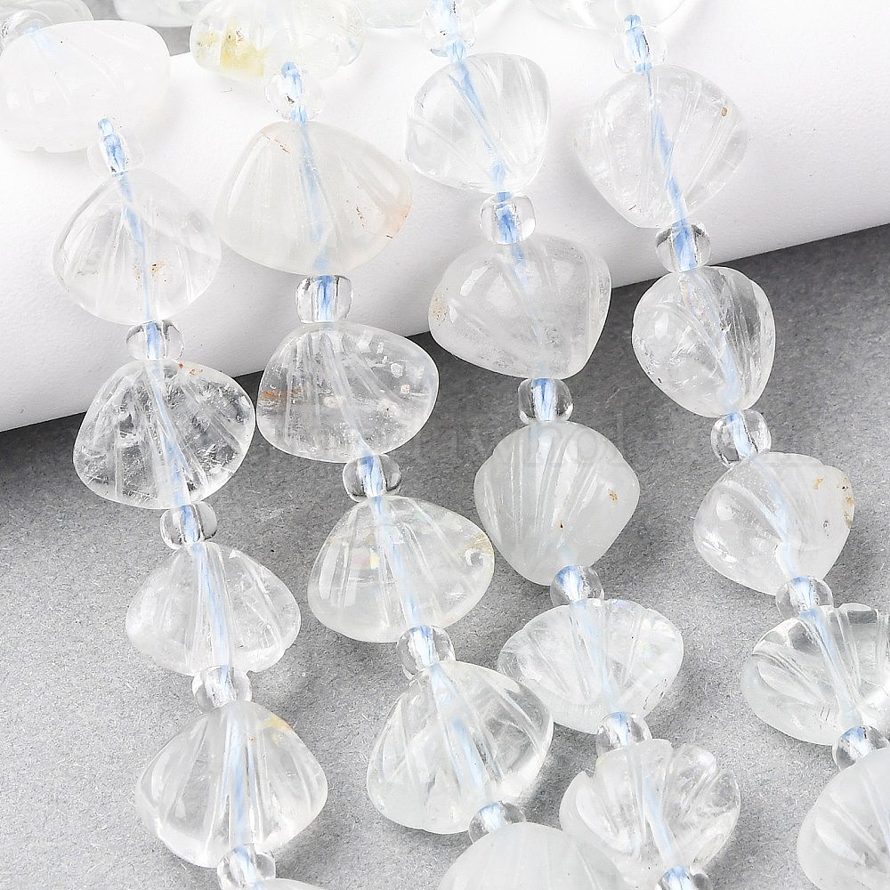 Нити резных бусин из натурального зеленого лунного камня, формы раковины, с бисером
