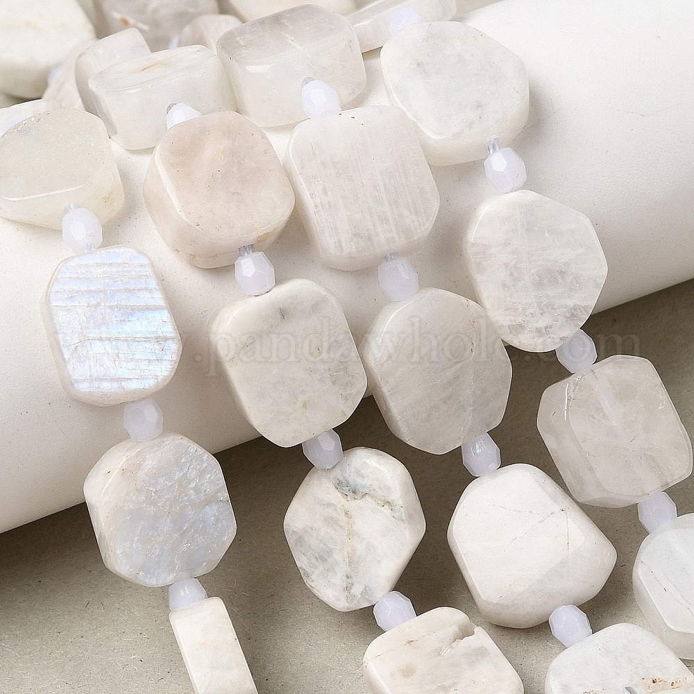 Бусины из натурального радужного лунного камня, прямоугольные, с бисером