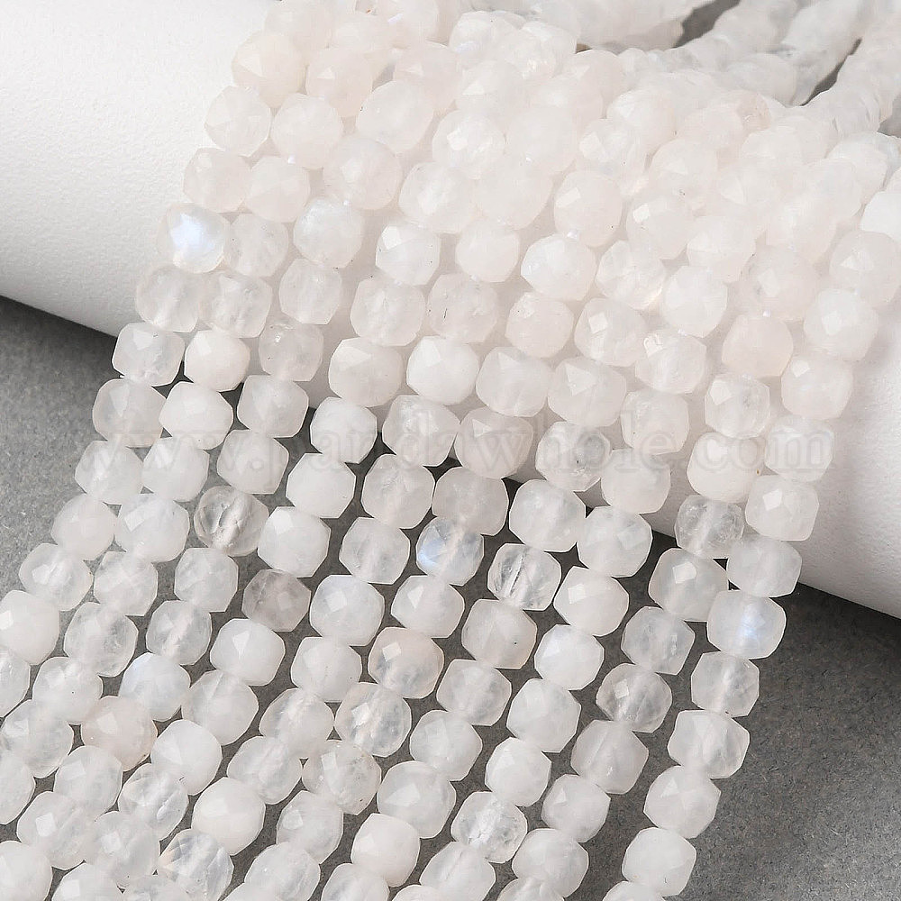 • Rainbow Moonstone Бусины из натурального радужного лунного камня, кубические, граненые, 4.5x4.5x4.5 мм, отверстие : 0.8 мм, около 96 шт / нитка, 15.28'' (38.8 см)