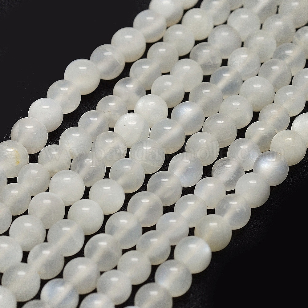 • White Moonstone Натуральный белый лунный камень бисер пряди, круглые, 6 мм, отверстие : 1 мм, около 67 шт / нитка, 14.96'' (38 см)