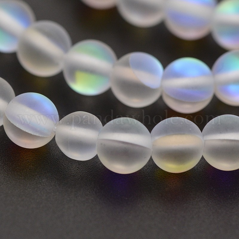 Круглые синтетические матовые лунные камни, голографические бусы, окрашенные, 6 мм, отверстие : 1 мм, около 60~62 шт / нитка, 14~15 дюйм