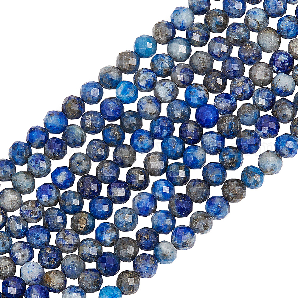 • Ляпис-Лазурь 2 нити натуральные лазуритовые бусины нити, граненые, круглые, 3 мм, отверстие : 0.8 мм, около 120~130 шт / нитка, 15.7 дюйм