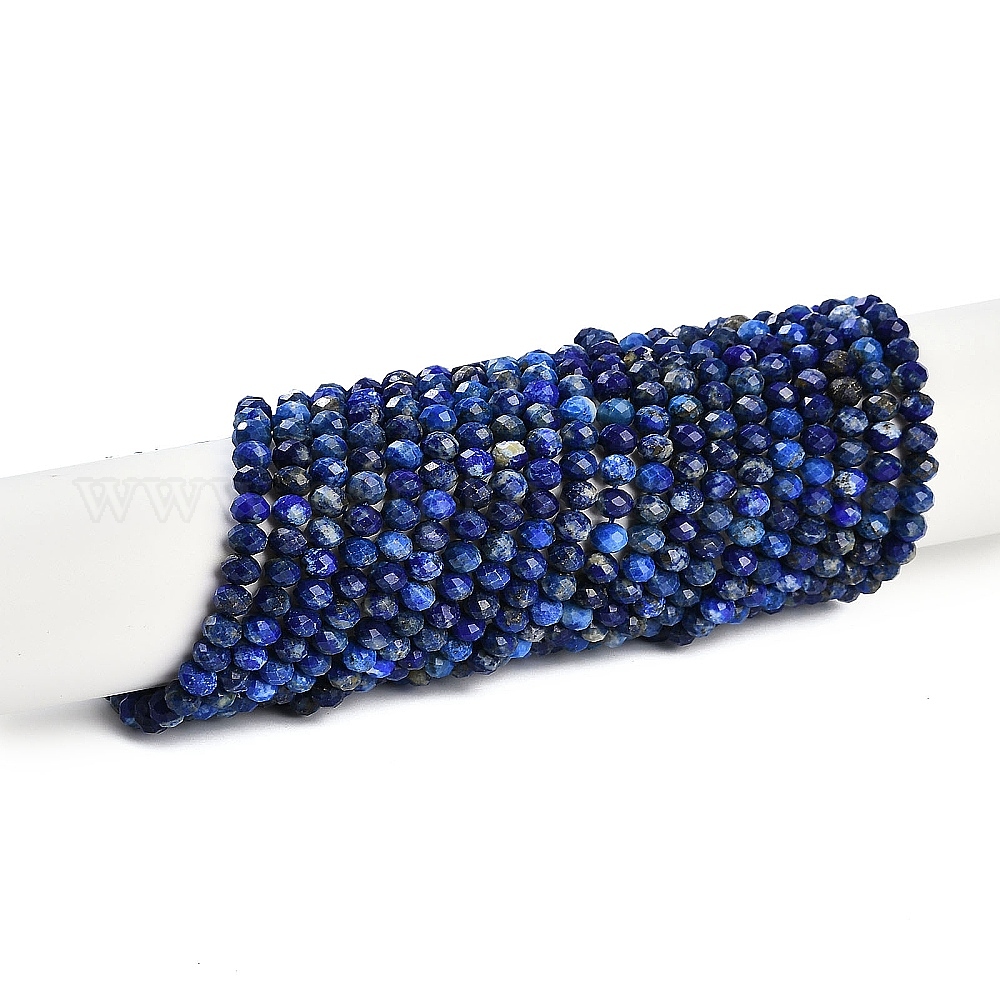 Нитки бусины из натурального ляписа-лазури, граненые, рондель