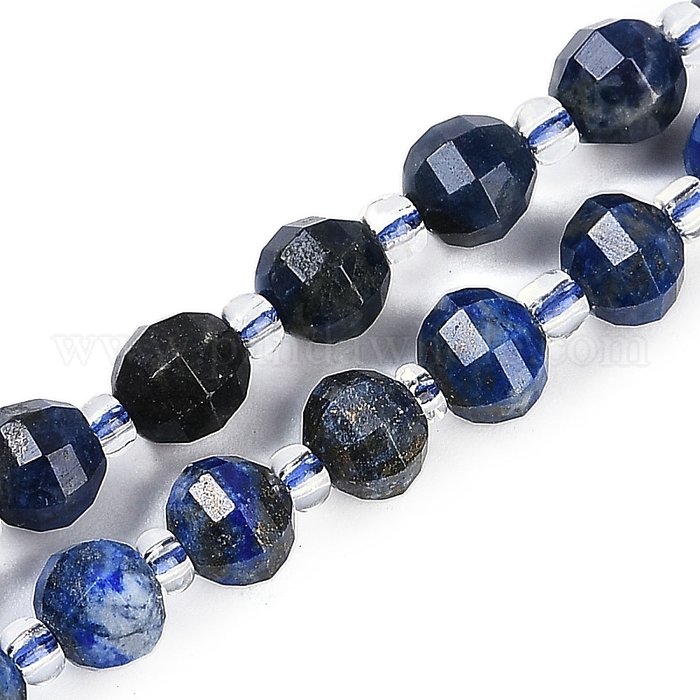 Нитки бусины из натурального ляписа-лазури, граненые, фонарь, с бисером