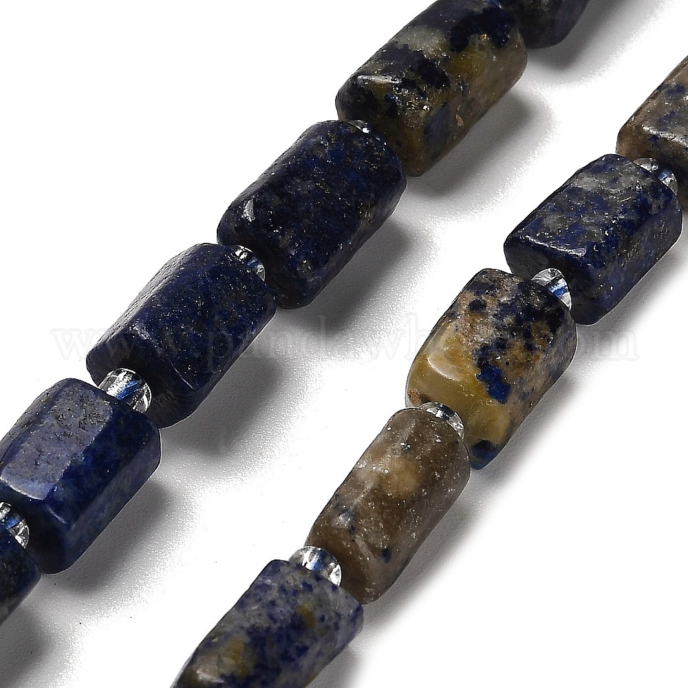 Нитки бусины из натурального ляписа-лазури, с бисером, граненые, колонка