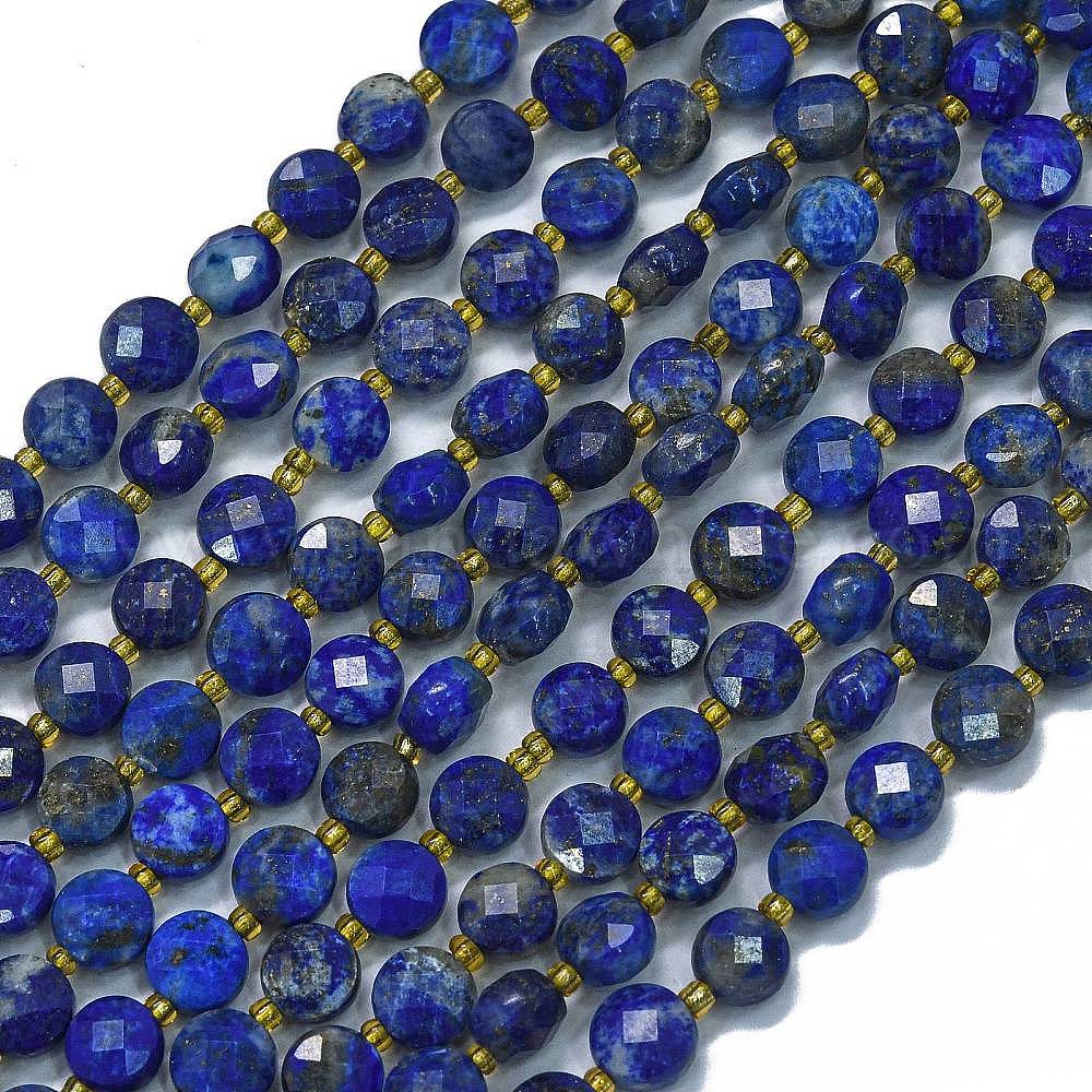 Окрашенные природные лазурит бисер пряди, с бисером, граненые, плоско-круглые