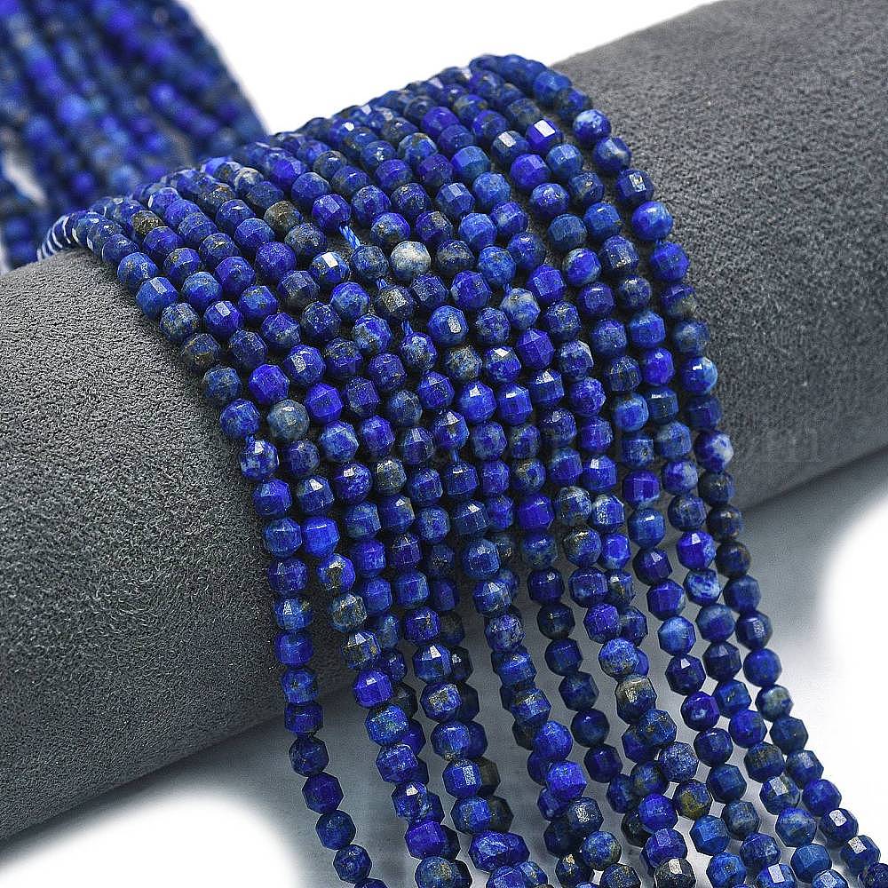 • Ляпис-Лазурь Нити натуральных бусин, окрашенных в лазурит, энергетическая призматическая огранка с двойными концами бусины, граненые двухконусные, 4x4.5 мм, отверстие : 0.4 мм, около 83 шт / нитка, 14.96 дюйм (38 см)
