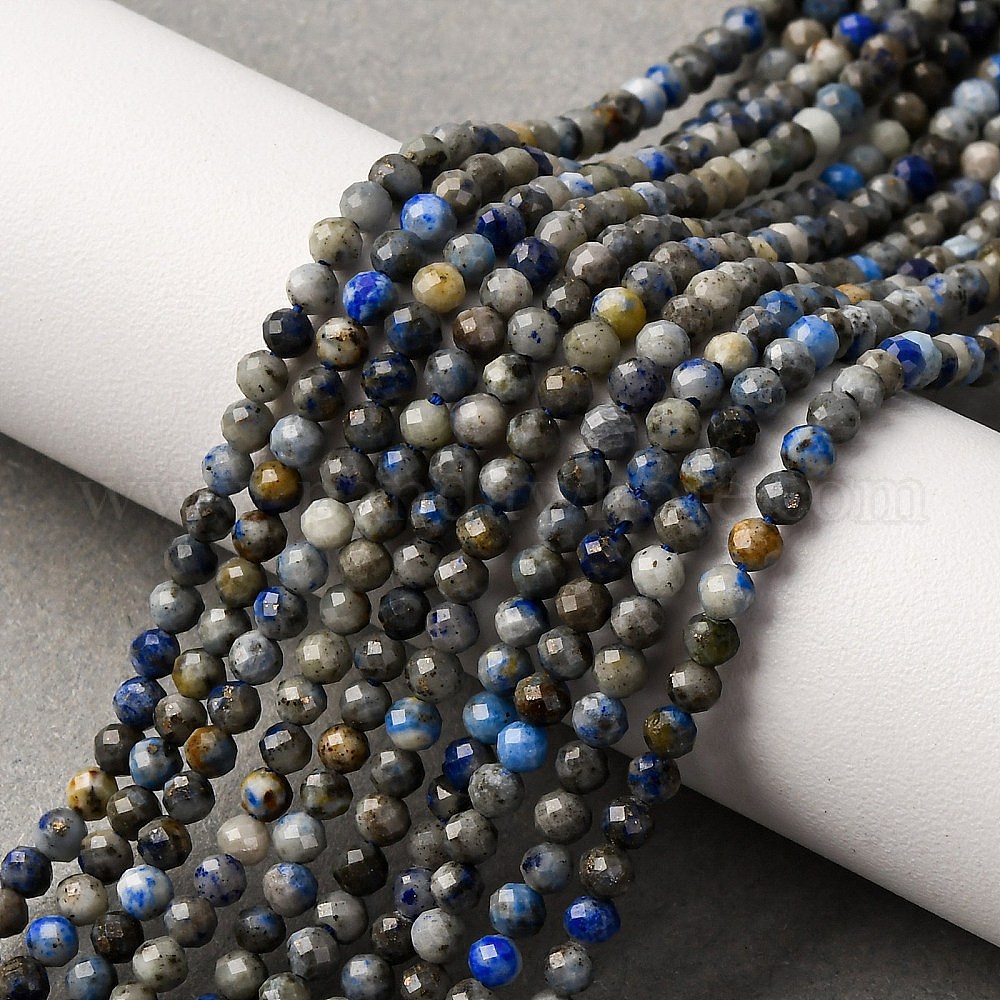 Нитки бусины из натурального ляписа-лазури, граненые, круглые