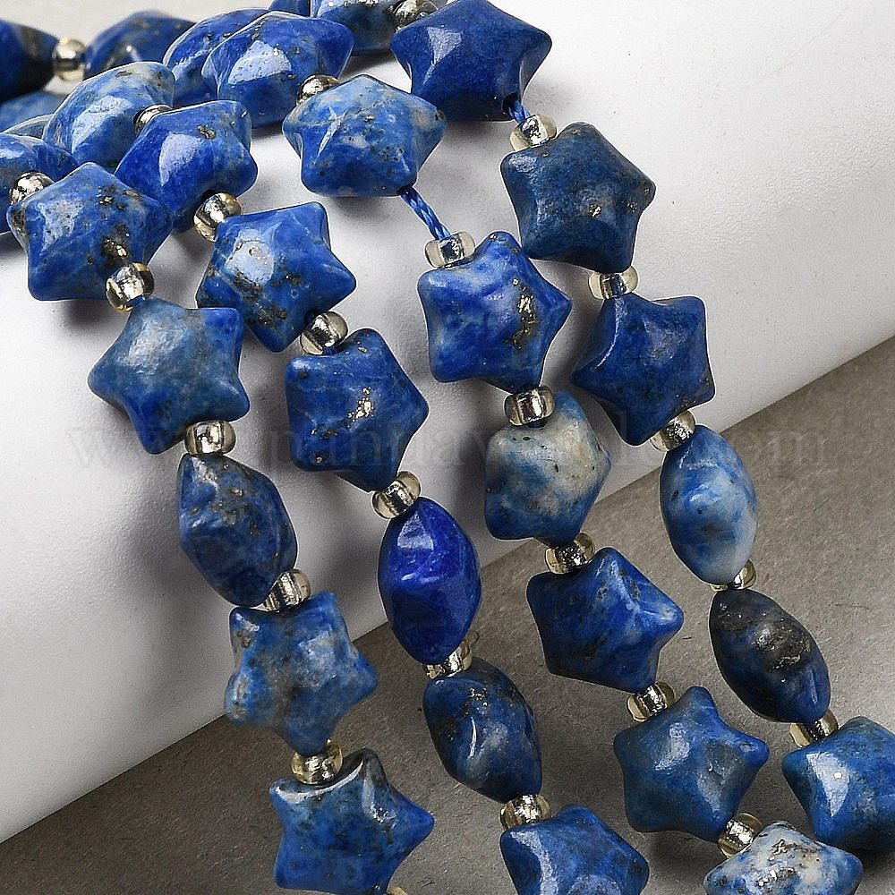 Нитки бусины из натурального ляписа-лазури, звезда, с бисером